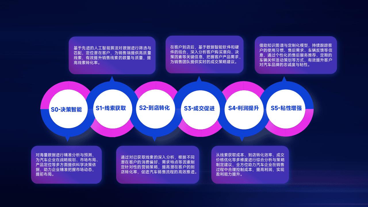 通过拓宽潜在客户来源、、、优化线索分配并提高到店转化率,,以增强销售效率。。同时,,利用线索数据不断优化分析模型,,,,有效提升转化率,,,,扩大营销影响力。。。